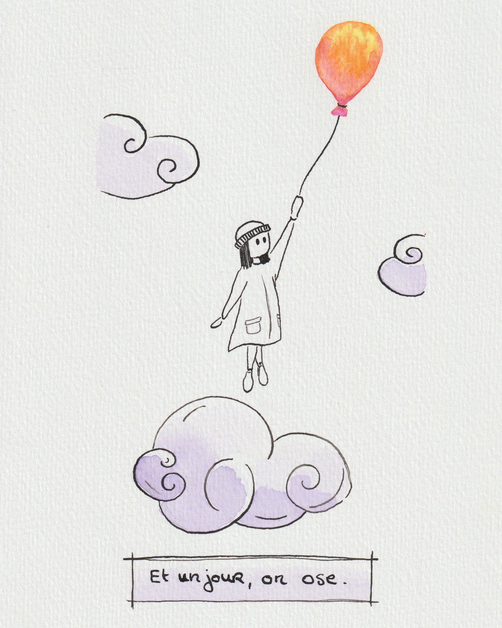 Je l'ai réalisée à l'encre et à l'aquarelle. Pour une personne qui voudrait se rappeler qu'on finit toujours par oser.